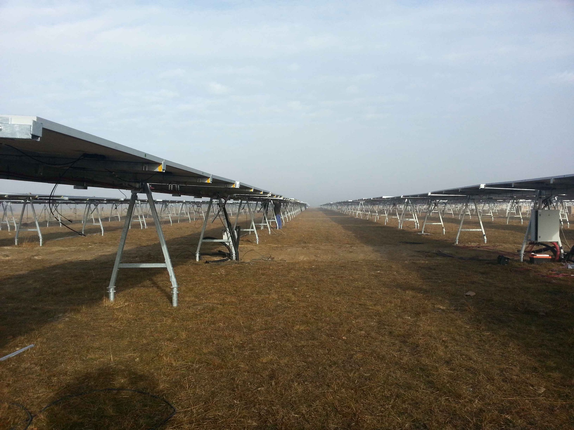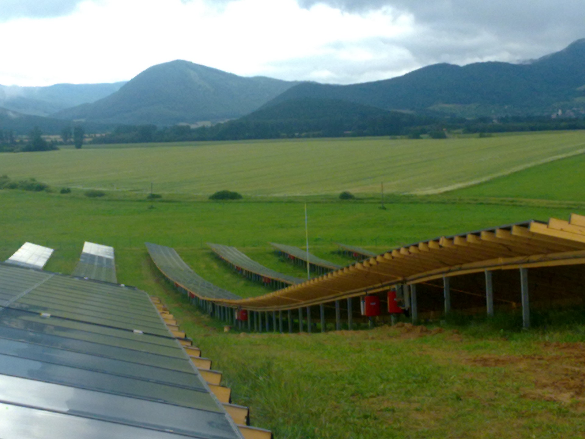 Výkon 1 MW ,polykrištalická technológia s nakláňanými panelmi, centrány systém 2x500KW Satcon